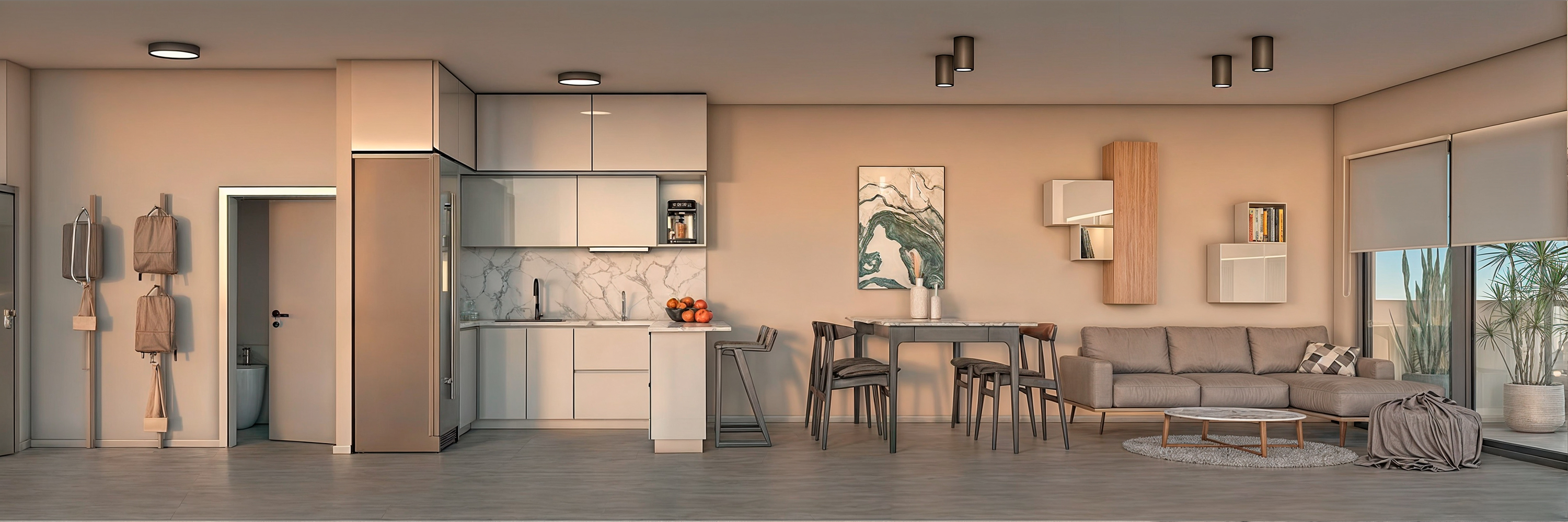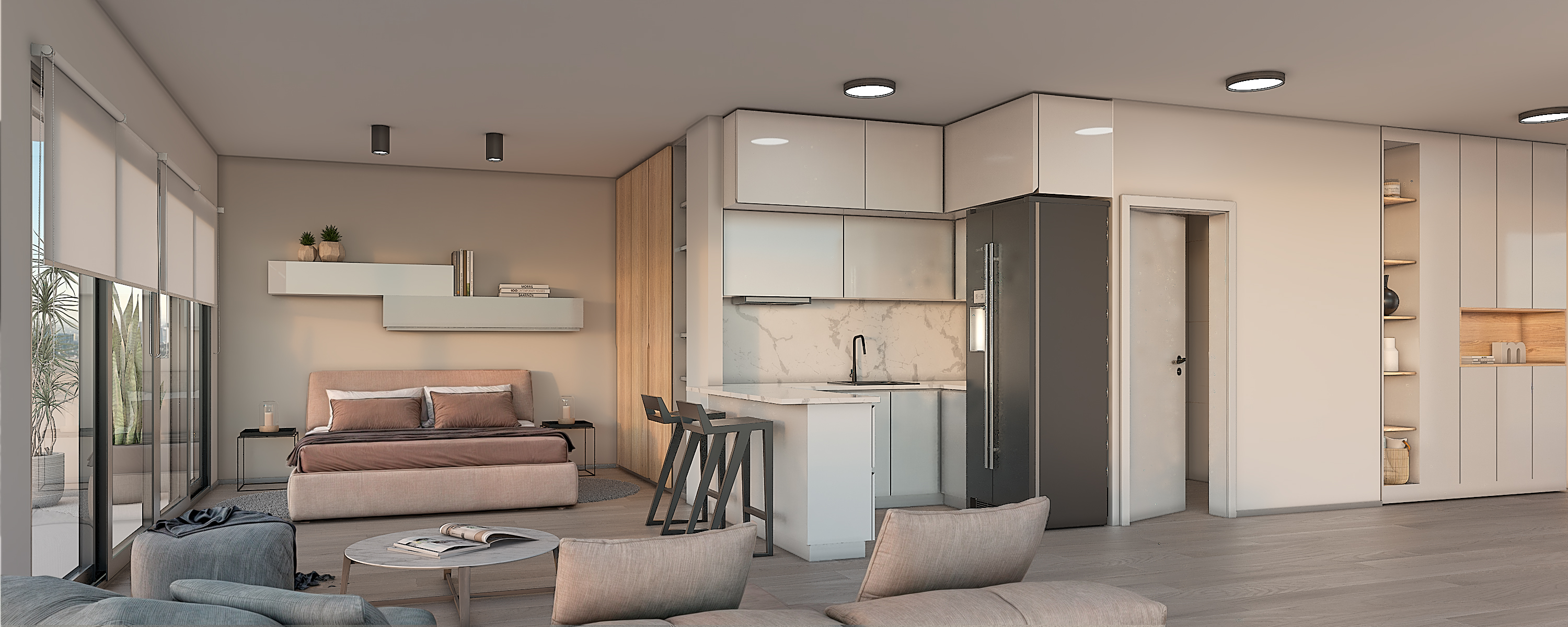 - Departamentos Monoambientes, 2 ambientes y Dúplex de 2 ambientes con balcón.